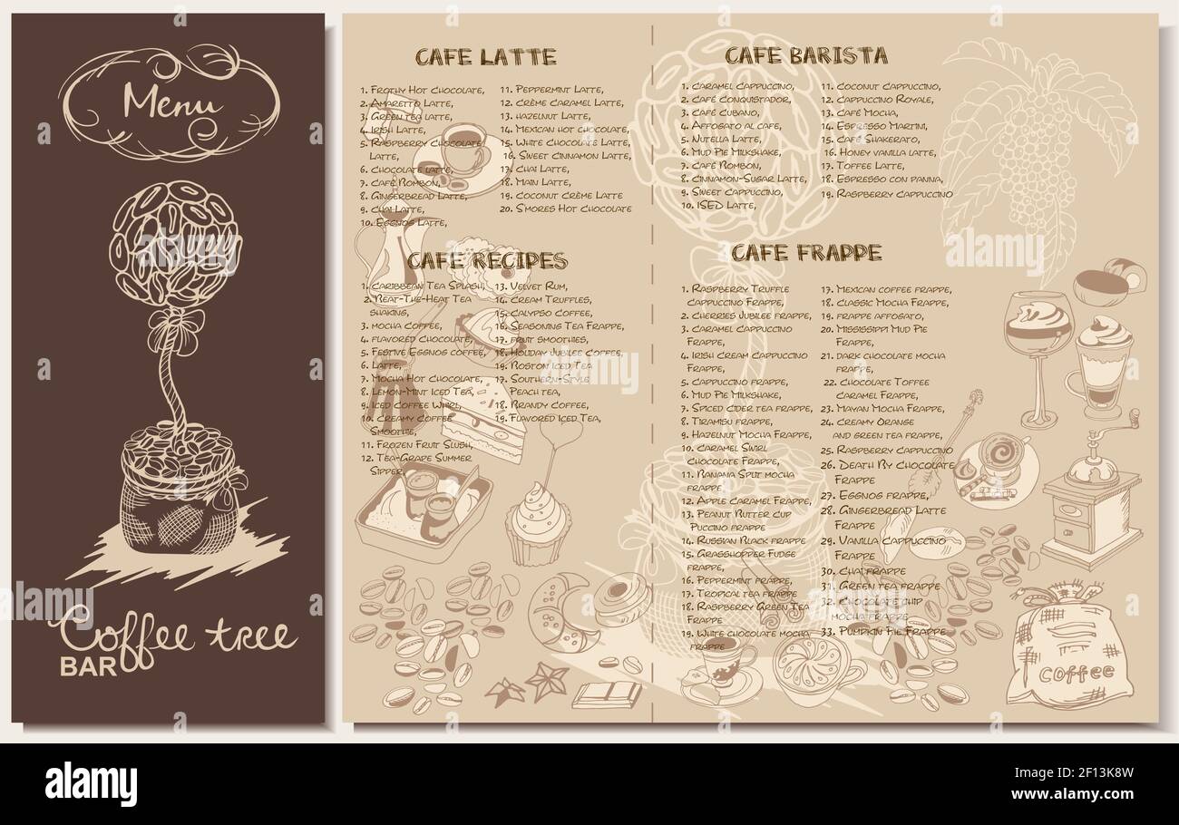 Doodle Coffee Restaurant Menu Template With Different Sorts Recipes Equipment Desserts And Spices Elements Vector Illustration Stock Vector Image Art Alamy